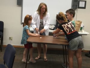 Kids involved in Friday’s Discovery Club enjoyed “spooky science” activities led by Ms. Jana, who leads almost all our science-related programs. About 15 young people attended Friday’s session. Again, the venue is the library multi-purpose room. In many libraries, science projects can be carried out in rooms with sinks and other paraphernalia appropriate to discovery sessions, but we make do with what we have at the Wimberley library.